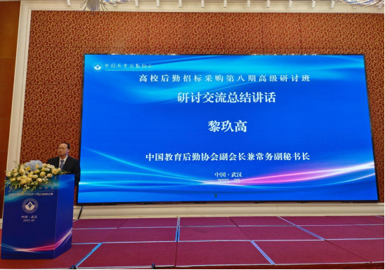 為深入學(xué)習(xí)貫徹黨的二十大精神和全國(guó)兩會(huì)精神,更好落 實(shí)相關(guān)部委招標(biāo)采購(gòu)文件要求,積極推進(jìn)高校后勤招標(biāo)采購(gòu)工 作高效、規(guī)范運(yùn)轉(zhuǎn),中國(guó)教育后勤協(xié)會(huì)秘書處于 2023 年 3 月 29 日-4 月 1 日在湖北省武漢市舉辦“高校后勤招標(biāo)采購(gòu)第八期高級(jí)研討班”。我校副校長(zhǎng)趙科研帶領(lǐng)計(jì)財(cái)處長(zhǎng)吳雙雙,采購(gòu)科滿建搏參加此次培訓(xùn)。