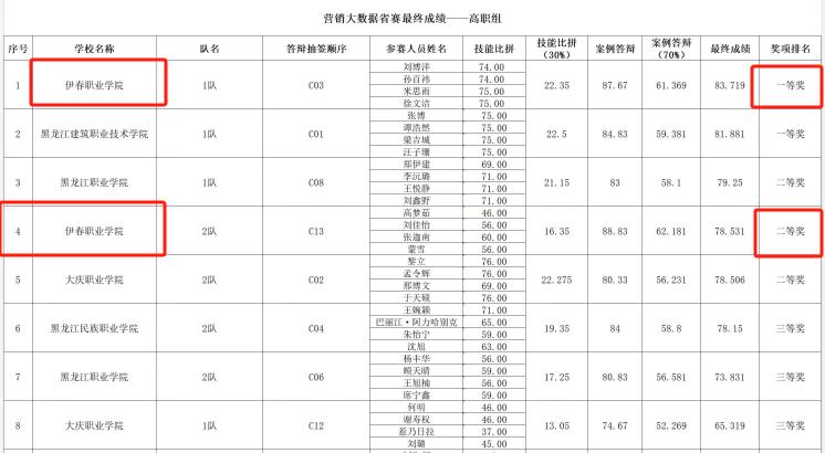 10月26日,由黑龍江省普通高等學校創(chuàng)新創(chuàng)業(yè)教育指導委員會主辦、哈爾濱商業(yè)大學承辦的2024第八屆一帶一路暨金磚國家技能發(fā)展與技術創(chuàng)新大賽之大數(shù)據(jù)分析應用與決策賽項營銷大數(shù)據(jù)子賽項選拔賽(黑龍江省賽區(qū))圓滿落幕。伊春職業(yè)學院旅游商務學院派出2支參賽隊伍,經(jīng)過激烈的比拼,憑借卓越的表現(xiàn)和扎實的專業(yè)技能,分別取得省賽一等獎、二等獎的佳績。