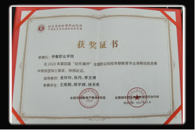 我校早期教育專業(yè)學(xué)生楊宇婷、王雨桐、徐天雨三名選手代表伊春職業(yè)學(xué)院參賽。由師范學(xué)院金鈴玲、張丹、李文博三位教師負(fù)責(zé)指導(dǎo)。在學(xué)院領(lǐng)導(dǎo)們的大力支持下,從暑假開始,三位指導(dǎo)老師就進(jìn)入備賽的準(zhǔn)備階段:研讀文件、多方調(diào)研、線上指導(dǎo)。9月22日,賽題正式公布。由于是第一次參賽,在近一個(gè)月備賽中,師生們克服了“學(xué)苗弱”、“底子薄”、“零經(jīng)驗(yàn)”、“無智能教具”等重重困難,師生合力、全力備賽,首次參賽便獲得國賽三等獎(jiǎng)的優(yōu)異成績。