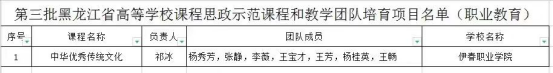該獎項也是繼2022年12月17日伊春職業(yè)學院公共教學部《中華優(yōu)秀傳統(tǒng)文化》課程入選第三批黑龍江省高等學校課程思政示范課程和教學團隊培育項目后,教學團隊取得的新成績,也是該培育項目的階段性成果。該項目團隊成員以習近平新時代中國特色社會主義思想為指導,緊緊圍繞立德樹人、弘揚優(yōu)秀傳統(tǒng)文化的根本任務,充分發(fā)揮團隊的力量,深耕課程思政育人領域,扎實開展后續(xù)研究工作。近幾年來,公共教學部在課程思政建設方面精準發(fā)力,為促進課程思政高質(zhì)量發(fā)展,積極打造《中華優(yōu)秀傳統(tǒng)文化》課程思政教學團隊,進行了富有成效的探索實踐,成果豐碩。