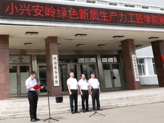 為全面落實(shí)新時代伊春人才振興計(jì)劃,致力在人才培養(yǎng)、技術(shù)創(chuàng)新、就業(yè)創(chuàng)業(yè)、社會服務(wù)等方面搭建多領(lǐng)域、多層次合作平臺,精準(zhǔn)培養(yǎng)一批高技術(shù)、高素質(zhì)人才,為我市實(shí)現(xiàn)產(chǎn)業(yè)升級和職業(yè)技能教育融合發(fā)展蓄勢賦能,7月25日,小興安嶺綠色新質(zhì)生產(chǎn)力工匠學(xué)院揭牌儀式在我校舉行。市人大常委會副主任、總工會主席王曉東,市總工會黨組書記苗成臣,市總工會二級調(diào)研員苗穎杰,我校黨委書記韓殿君、院長王春海、黨委班子成員及學(xué)校各部門責(zé)任人出席揭牌儀式,揭牌儀式由苗穎杰主持。