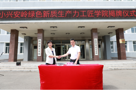 活動現(xiàn)場,我校黨委書記韓殿君代表學(xué)校致辭;市總工會黨組書記苗成臣代表市總工會講話;伊春市總工會與我校簽訂工匠學(xué)院合作協(xié)議;市人大常委會副主任、市總工會主席王曉東與院長王春海為小興安嶺綠色新質(zhì)生產(chǎn)力工匠學(xué)院揭牌。