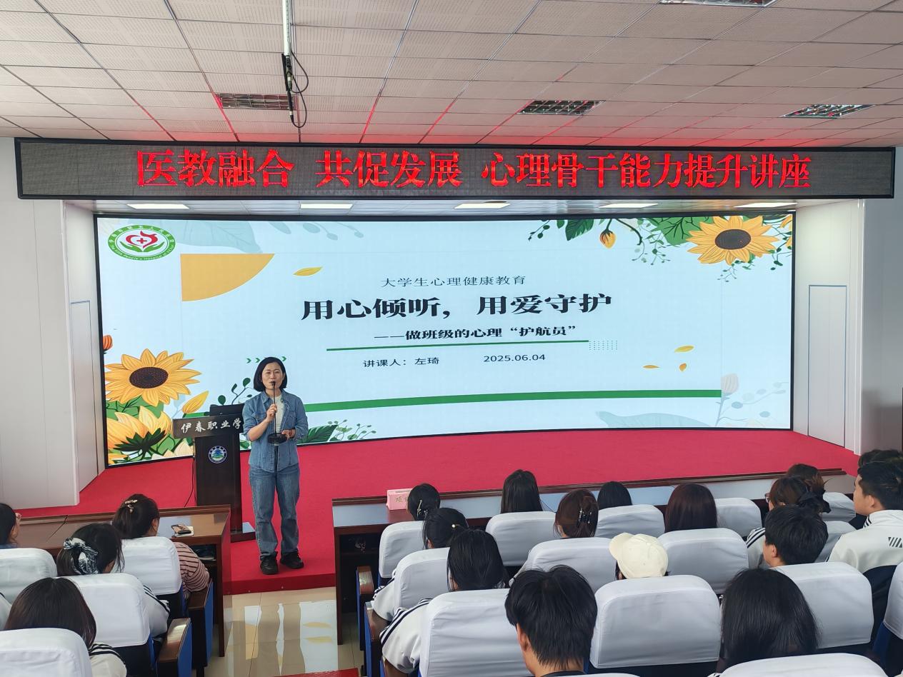 6月4日下午,我校舉辦5?25心理健康教育月系列活動(dòng)——“用心傾聽(tīng),用愛(ài)守護(hù)”心理骨干能力提升專(zhuān)題講座。本次講座邀請(qǐng)伊春市第五人民醫(yī)院左琦主講,100余名師生心理骨干參加。