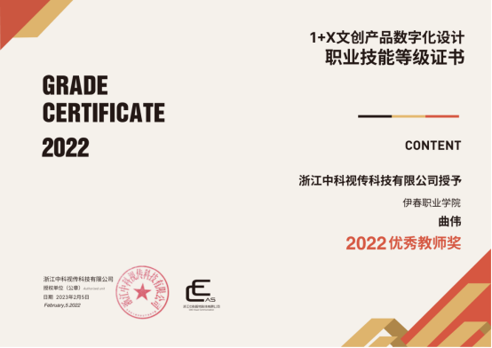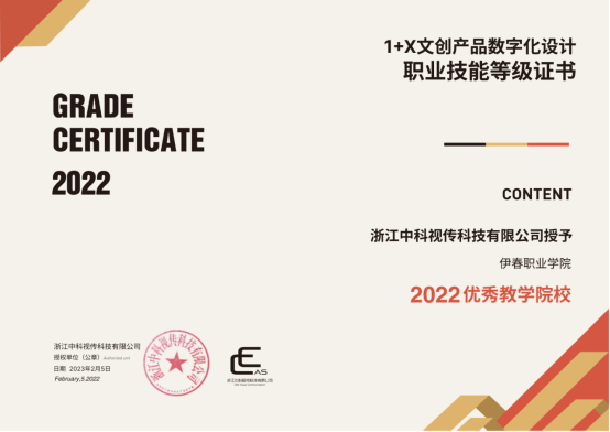 近日,浙江中科視傳科技有限公司針對(duì)2022年度“1+X”工作開展中的優(yōu)秀院校給予表彰,我校榮獲2022年度“1+X文創(chuàng)產(chǎn)品數(shù)字化設(shè)計(jì)職業(yè)技能等級(jí)證書”優(yōu)秀教學(xué)院校、帶頭模范院校及優(yōu)秀師資團(tuán)隊(duì)等榮譽(yù)。