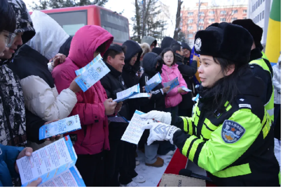 啟動儀式過后,伊春交警通過多種形式開展本次122全國交通安全日宣傳活動,宣傳民警通過開展趣味抽獎活動,以寓教于樂的方式為參加活動的學生講解交通安全知識和發(fā)放宣傳品,同時聯(lián)合公交公司設置車輛盲區(qū)互動體驗環(huán)節(jié),邀請學生們上車互動感受,身臨其境體驗車輛盲區(qū)視角,直觀了解盲區(qū)概念,切實提升學生自我防護意識。