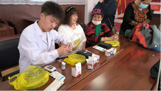 護(hù)理學(xué)院黨支部志愿者為社區(qū)居民測(cè)血糖