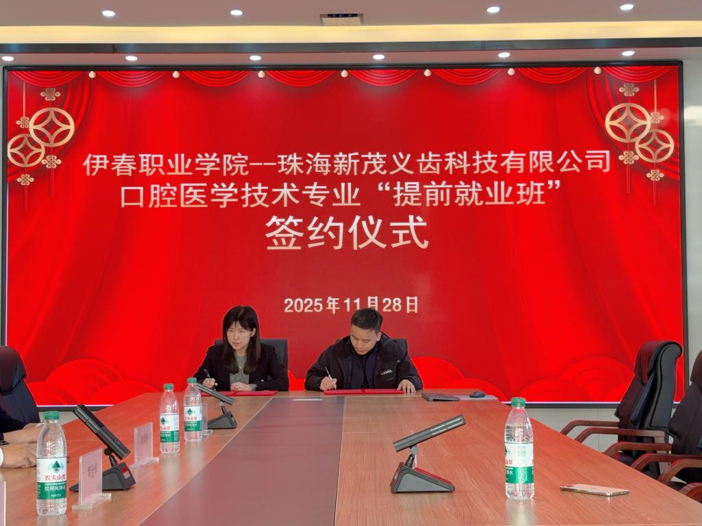 11月28日,伊春職業(yè)學(xué)院與珠海新茂義齒科技有限公司在醫(yī)學(xué)實(shí)訓(xùn)樓會議室隆重舉行了口腔醫(yī)學(xué)技術(shù)專業(yè)“提前就業(yè)班”簽約儀式。此舉旨在深化產(chǎn)教融合,共同培養(yǎng)高素質(zhì)技術(shù)技能人才。