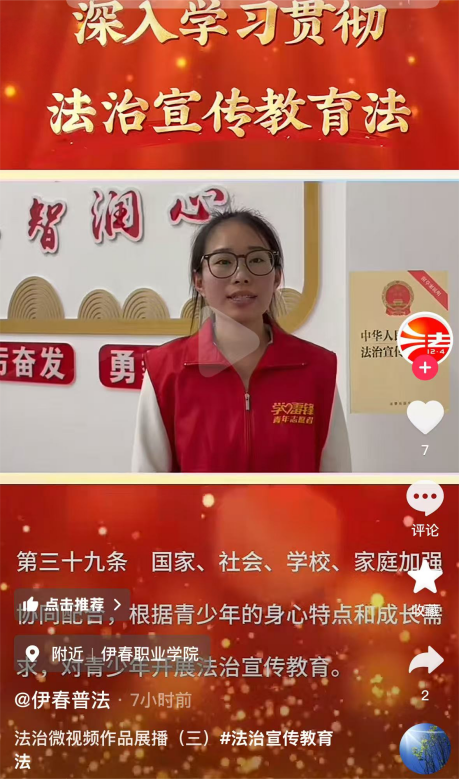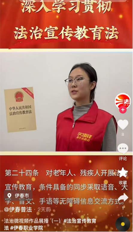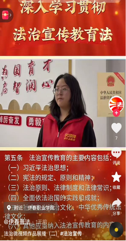 近日,口腔醫(yī)學(xué)院大學(xué)生普法志愿服務(wù)隊(duì)精心策劃拍攝的系列普法宣傳視頻,正式在“伊春普法”官方抖音賬號(hào)上線展播。志愿者們以生動(dòng)活潑的形式向社會(huì)公眾宣傳解讀新近出臺(tái)的《中華人民共和國(guó)法治宣傳教育法》,開啟了校園普法與新媒體融合創(chuàng)新的有益嘗試。