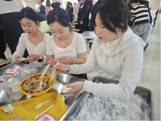 活動(dòng)開始前,師生自由組隊(duì),同學(xué)們滿懷熱情,現(xiàn)場(chǎng)熱鬧非凡,同學(xué)們有條不紊地投身到包餃子之中。同學(xué)們匠心獨(dú)運(yùn),將各種美味餡料巧妙地包裹其中,盡管包出的餃子形狀各異,卻無(wú)一不凝聚著同學(xué)們的誠(chéng)摯心意與青春活力。大家互相交流包餃子的技巧和心得,分享自己的家鄉(xiāng)習(xí)俗和冬至故事,現(xiàn)場(chǎng)氣氛活躍,處處洋溢著“家”的味道。隨著一盤盤熱氣騰騰的餃子新鮮出鍋,那裊裊升騰的熱氣仿佛將冬日的嚴(yán)寒驅(qū)散殆盡。