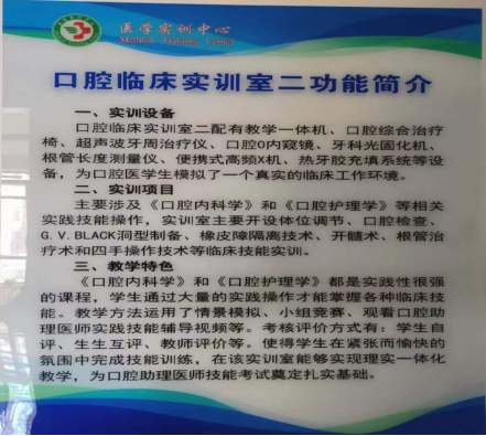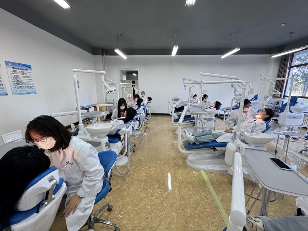 口腔臨床實(shí)訓(xùn)室配有教學(xué)一體機(jī)、口腔綜合治療椅、超聲波牙周治療儀、口腔內(nèi)窺鏡、牙科光固化機(jī)、根管長(zhǎng)度測(cè)量?jī)x、便攜式高頻X機(jī)、熱牙膠充填系統(tǒng)等設(shè)備,為口腔醫(yī)學(xué)生模擬了一個(gè)真實(shí)的臨床工作環(huán)境。