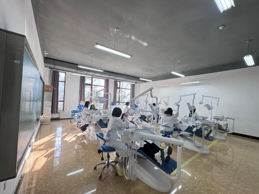 口腔臨床實(shí)訓(xùn)室配有口腔綜合治療椅、超聲波牙周治療儀、口腔內(nèi)窺鏡、牙科光固化機(jī)等設(shè)備,為口腔醫(yī)學(xué)生模擬了一個(gè)真實(shí)的臨床工作環(huán)境。
