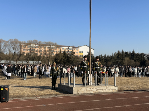 上午七點(diǎn)半,參與人員準(zhǔn)備就位?,F(xiàn)場(chǎng)隨著儀仗隊(duì)的出現(xiàn)而安靜下來(lái)。莊嚴(yán)的儀仗隊(duì)護(hù)衛(wèi)著國(guó)旗走入場(chǎng)內(nèi)。國(guó)旗護(hù)衛(wèi)隊(duì)的隊(duì)員們邁著整齊的步伐,護(hù)送國(guó)旗入場(chǎng),伴著莊嚴(yán)嘹亮的國(guó)歌,五星紅旗冉冉升起,全體師生懷著崇敬與喜悅的心情,凝視著迎風(fēng)飄揚(yáng)的五星紅旗,心中無(wú)比自豪。