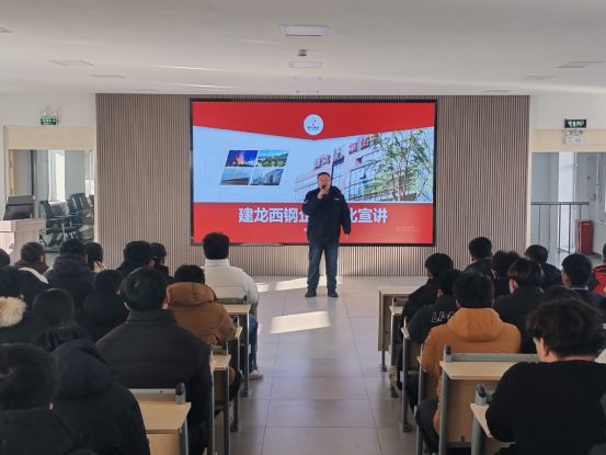 在智控中心,姜兆名主任向師生們介紹在我省領(lǐng)先的智能化鋼鐵冶金控制中心,這套系統(tǒng)可以實(shí)現(xiàn)煉鐵全流程的智能化管理、控制和檢測(cè),極大的提高了生產(chǎn)效率,實(shí)現(xiàn)了生產(chǎn)的信息化。在能源中心的能源管控大廳,師生們觀看了能源工藝的介紹視頻,與現(xiàn)場(chǎng)的工程師進(jìn)行了交流。在建龍西鋼的培訓(xùn)中心,四位建龍西鋼的高級(jí)工程師向大家開展了以建龍西鋼企業(yè)文化、生產(chǎn)發(fā)展趨勢(shì)、企業(yè)地緣建設(shè)理念為內(nèi)容的主題講座。