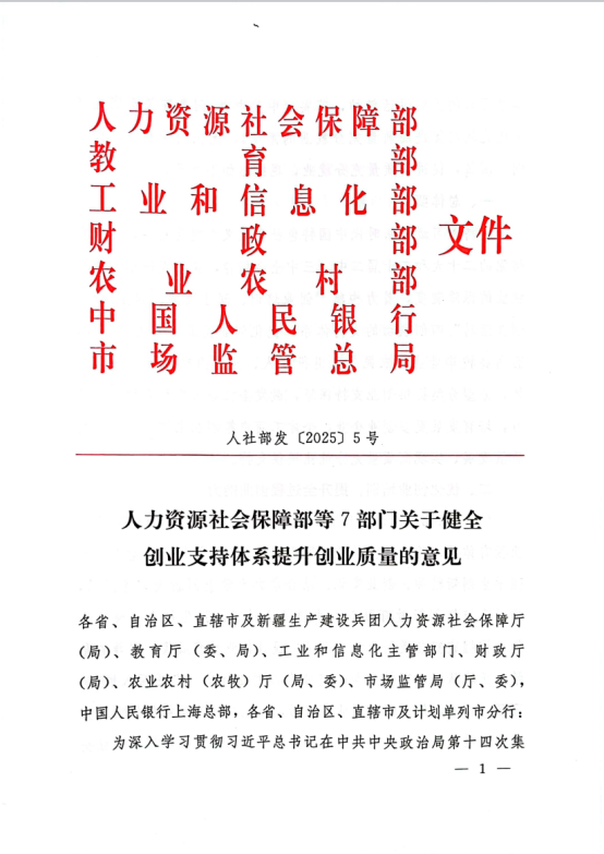 人社部等7部門(mén)關(guān)于健全創(chuàng)業(yè)支持體系提升創(chuàng)業(yè)質(zhì)量的意見(jiàn)