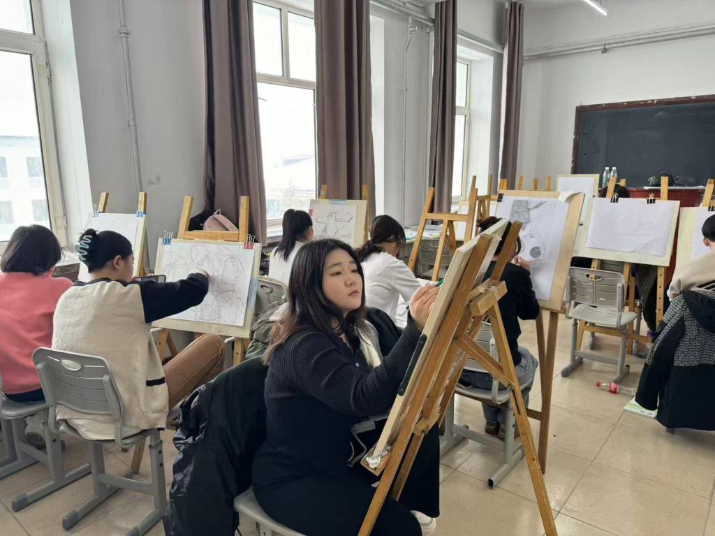 學(xué)生在畫室進(jìn)行空間造型訓(xùn)練