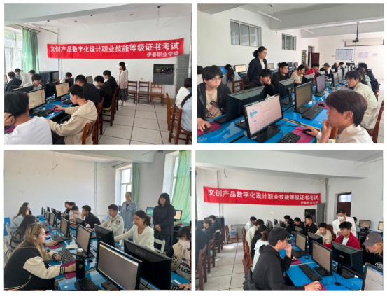 近日,“1+X”文創(chuàng)產(chǎn)品數(shù)字化設(shè)計職業(yè)技能等級證書(初級)考試成績發(fā)布,師范學(xué)院藝術(shù)設(shè)計專業(yè)共91名學(xué)生參加了該證書考試,通過率達到100%??荚嚠?dāng)天,伊春職業(yè)學(xué)院校領(lǐng)導(dǎo)和師范學(xué)院領(lǐng)導(dǎo)親自到現(xiàn)場督導(dǎo)巡視。師范學(xué)院自申報“1+X”文創(chuàng)產(chǎn)品數(shù)字化設(shè)計職業(yè)技能等級證書試點以來,“1+X”教學(xué)團隊按照專業(yè)發(fā)展需求,不斷深化教育教學(xué)改革、積極探索適應(yīng)專業(yè)發(fā)展的教學(xué)和育人模式,結(jié)合人才培養(yǎng)方案,認(rèn)真分析證書對應(yīng)的工作領(lǐng)域、工作崗位和技能要求,精心設(shè)計課程教學(xué),進一步增加了專業(yè)與“1+X”證書的契合度。