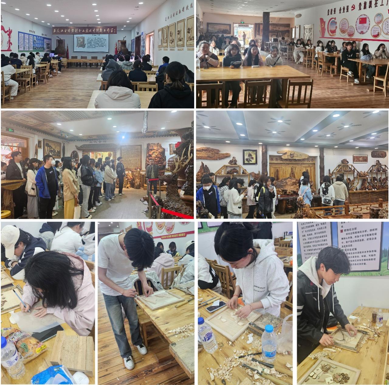 實踐活動一:在興安木藝產(chǎn)業(yè)學院實訓基地美江木藝有限責任公司開展,首屆傳統(tǒng)工藝大國非遺工匠王美江為學生們打造“可觸摸的非遺課堂”,一是以“匠心流韻繪興安”為主題,為同學們講解非遺木拼畫、北沉香、山核桃的歷史傳承、發(fā)展和制作工藝流程,并希望通過此次活動讓更多年輕人積極投身于非遺保護,為傳承發(fā)展注入青春活力。二是通過參觀非遺展廳,感受非遺文化,激發(fā)探索興趣,提升創(chuàng)新意識,增強傳承、弘揚和保護非遺的責任感。三是在實踐環(huán)節(jié)王美江大師用木材邊角料拼貼非遺木拼畫,并與學生們一起現(xiàn)場制作。參與活動的同學們紛紛表示,這種“手把手”地教學拉近了非遺與他們的距離,真正感受到了非遺的魅力。近年來,伊春美江木藝以非遺木拼畫精品實踐課為活動內(nèi)容,將非遺文化融入學校課程體系中,通過課堂、實踐、活動等形式,持續(xù)推進應用型技術(shù)技能人才培養(yǎng)創(chuàng)新實踐,增強學生的文化認同感和傳承意識。