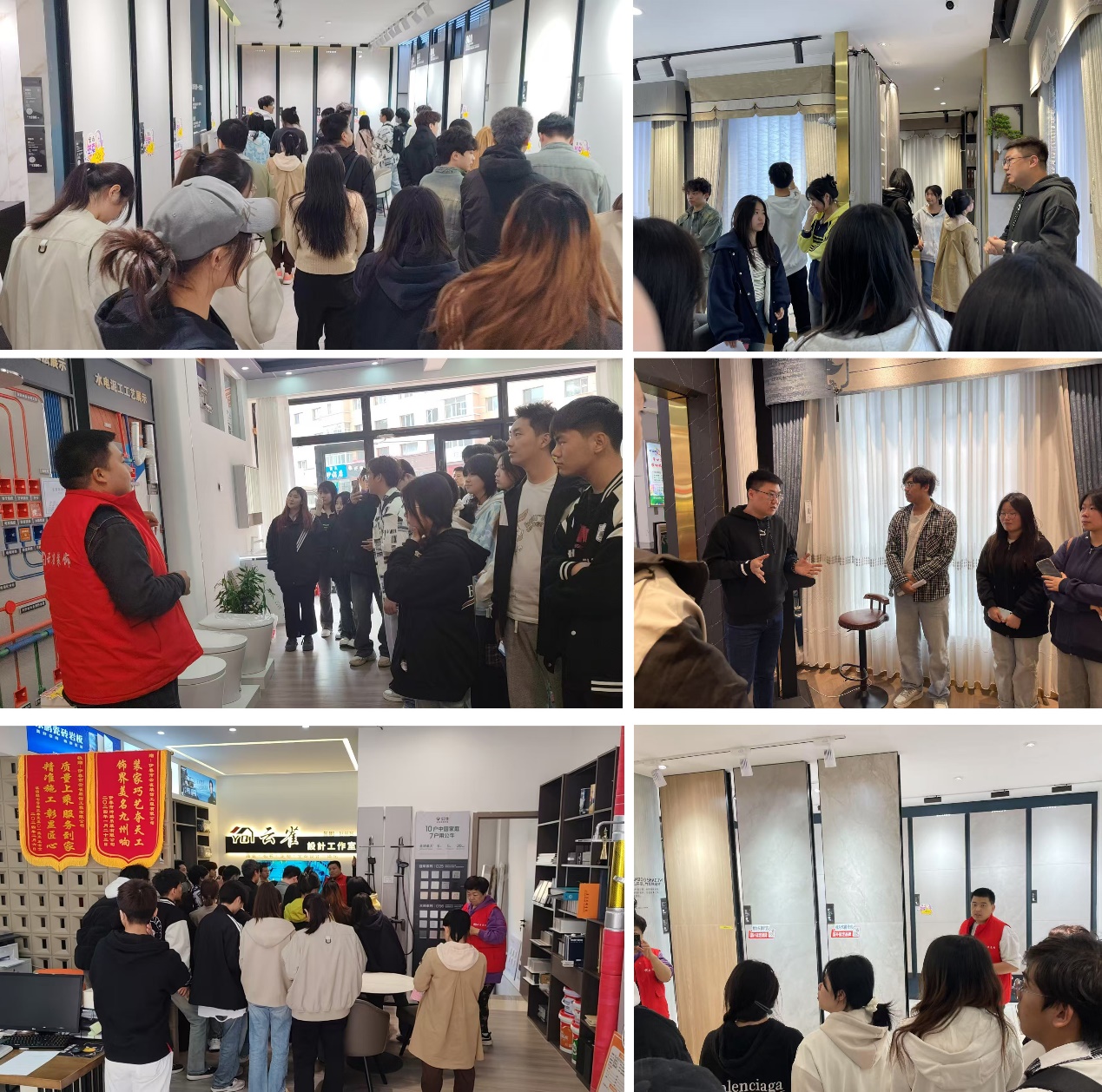 實踐活動二:在伊春云雀建筑裝飾設(shè)計公司開展,讓學生在實際項目中接觸和運用非遺元素,提升專業(yè)素養(yǎng)和文化認同感。在公司設(shè)計工作室,專業(yè)師傅對學生們進行現(xiàn)場教學和指導,一是講述如何將非遺文化中的圖案和色彩運用到建筑外觀和室內(nèi)裝飾設(shè)計中,二是如何將非遺材料和工藝與現(xiàn)代建筑材料和技術(shù)相結(jié)合,創(chuàng)造出獨特的視覺效果和質(zhì)感,三是讓學生如何在實際操作中學習和掌握非遺技藝和設(shè)計方法。在實木家具區(qū),了解榫卯結(jié)構(gòu)與現(xiàn)代五金連接件的結(jié)合應用,體會到傳統(tǒng)工藝在當代設(shè)計中的創(chuàng)新轉(zhuǎn)化等。通過學習,學生們在參與建筑公司的實際項目中運用所學的非遺知識和技能進行設(shè)計和創(chuàng)作,并接受公司和學校老師的指導和評價。