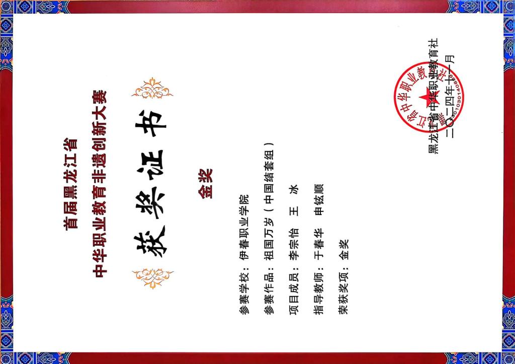 2018年,于春華老師的中國(guó)繩結(jié)技藝課作為拓展課面向全校學(xué)生開(kāi)設(shè)。2019年,在校領(lǐng)導(dǎo)的關(guān)懷和支持下,在大學(xué)生創(chuàng)新創(chuàng)業(yè)辦公室主任及老師的幫助和策劃之下,成立了磐古結(jié)藝工坊,作為伊春職業(yè)學(xué)院特有的中國(guó)結(jié)工作室,面向全校學(xué)生開(kāi)放。它不僅豐富了學(xué)生的課余文化生活,培養(yǎng)了一大批喜愛(ài)編制中國(guó)繩結(jié)的學(xué)生,對(duì)中國(guó)傳統(tǒng)手工技藝的傳承起到了積極作用。自工作室成立以來(lái),先后四年參加黑龍江省互聯(lián)網(wǎng)+大學(xué)生創(chuàng)新創(chuàng)業(yè)大賽,均取得優(yōu)異的成績(jī)。2023年8月,于春華老師帶領(lǐng)的繩結(jié)技藝團(tuán)隊(duì)還榮獲2023年伊春市市級(jí)技能大師工作室稱號(hào)。2024年8月,被黑龍江省人社廳評(píng)委省級(jí)技能大師工作室。同時(shí)2024年8月磐古結(jié)藝工作室的中國(guó)結(jié)項(xiàng)目被伊美區(qū)評(píng)為區(qū)級(jí)非物質(zhì)文化遺產(chǎn),2025年3月此中國(guó)結(jié)項(xiàng)目又被評(píng)為伊春市市級(jí)非物質(zhì)文化遺產(chǎn)。