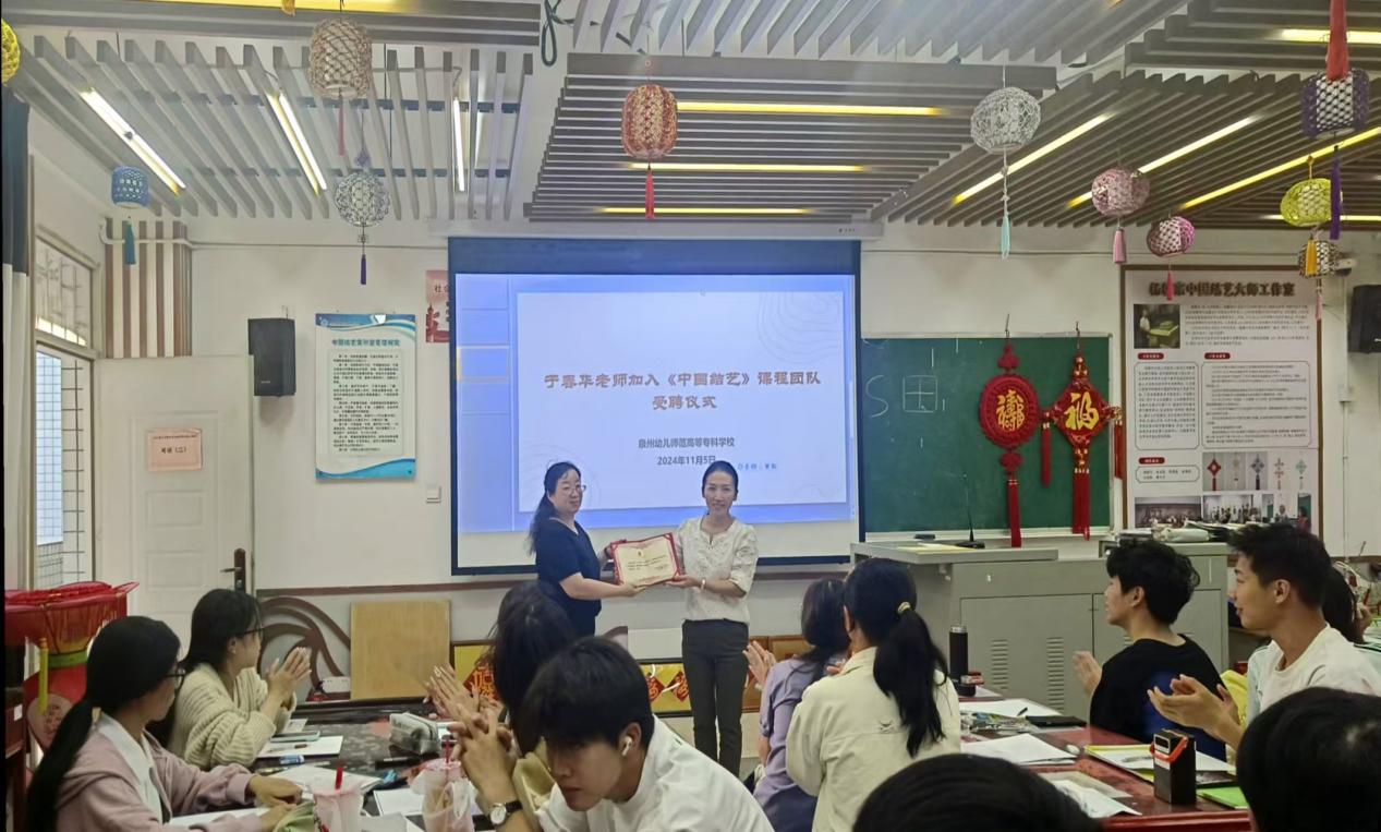 于春華老師給泉州幼兒高等師范??茖W(xué)校中國(guó)結(jié)工作室的孩子們上了一節(jié)中國(guó)結(jié)技藝課,獲得了教師與學(xué)生的一致好評(píng)。