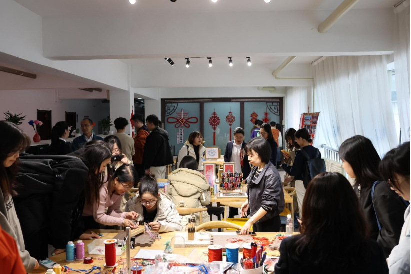 到訪的師生們被這份深情厚意深深打動(dòng),對(duì)中國(guó)結(jié)產(chǎn)生了濃厚的興趣。在工作室老師的悉心指導(dǎo)下,他們紛紛拿起材料,嘗試著動(dòng)手制作屬于自己的中國(guó)結(jié)作品。起初,手指略顯笨拙,但在老師的耐心教導(dǎo)下,漸漸地,一根根紅繩在他們的手中翻飛,編織出一幅幅寓意吉祥、形態(tài)各異的結(jié)藝作品。
